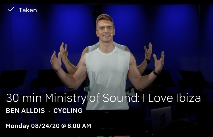 Determined to start the week off on a positive note I selected to do a 30 minute Ministry of Sound : I Love Ibiza ride with Ben Alldis. I’ve been known to tear up a few dance floors in my day (!) and this mix of dance music from some of the most iconic clubs in the world definitely got my groove on. How could I do anything but cycle in time to tracks such as ‘Bingo Bango’ from London’s Basement Jaxx or the club classic ‘God is a DJ’ by Faithless? True story, I went to high school with Sister Bliss from Faithless AND appeared in one of their music videos! As a teacher who likes to teach through stories, I appreciated the way that Ben took us on a journey, with the playlist taking us from our flight to Ibiza, to the club, and then onto the super club.