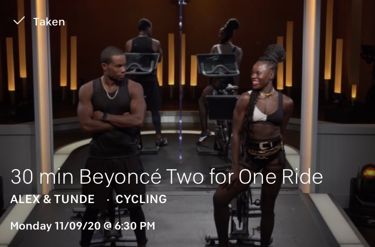 Having set personal records in my last two rides I was feeling tired coming into this 30 minute Beyoncé Two for One ride with instructors Alex Toussaint and Tunde Oyeneyin. It wasn’t even the first track that got me fired up to ride but the track BEFORE the first track – the background introduction tune was my favorite Beyoncé track, ‘Crazy In Love‘ and I came out pedaling! I didn’t PR today, but the standout track from the mix for me was Destiny Child’s ‘Lose My Breath‘. Remember when I said that music with lyrics that refer to movement has a motivational effect? This track repeats “Can You Keep Up?” throughout the track. I tried to keep up, I promise. Consider myself ergogenically energized after this ride.