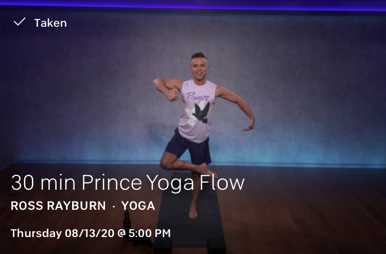 Thursday: Queen B kicked my butt yesterday and I owed my body a recovery day. To paraphrase yesterday’s instructor Alex Toussaint, “I earned it so I deserve it”. That doesn’t mean that I couldn’t still use music to help me with today’s active recovery, for which I chose a 30 minute Prince Yoga Flow with Ross Rayburn.