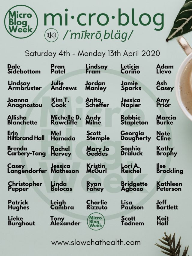 As someone who practices gratitude as often as I can, I am grateful to you for supporting slowchathealth. If you EVER want to write a blog post, please don’t hesitate to reach out to me. Perhaps the #Microblog event in April might be a great opportunity. In addition to this blog, you can find me on Twitter, Instagram, Pinterest, and Peloton. Let’s stay in touch.