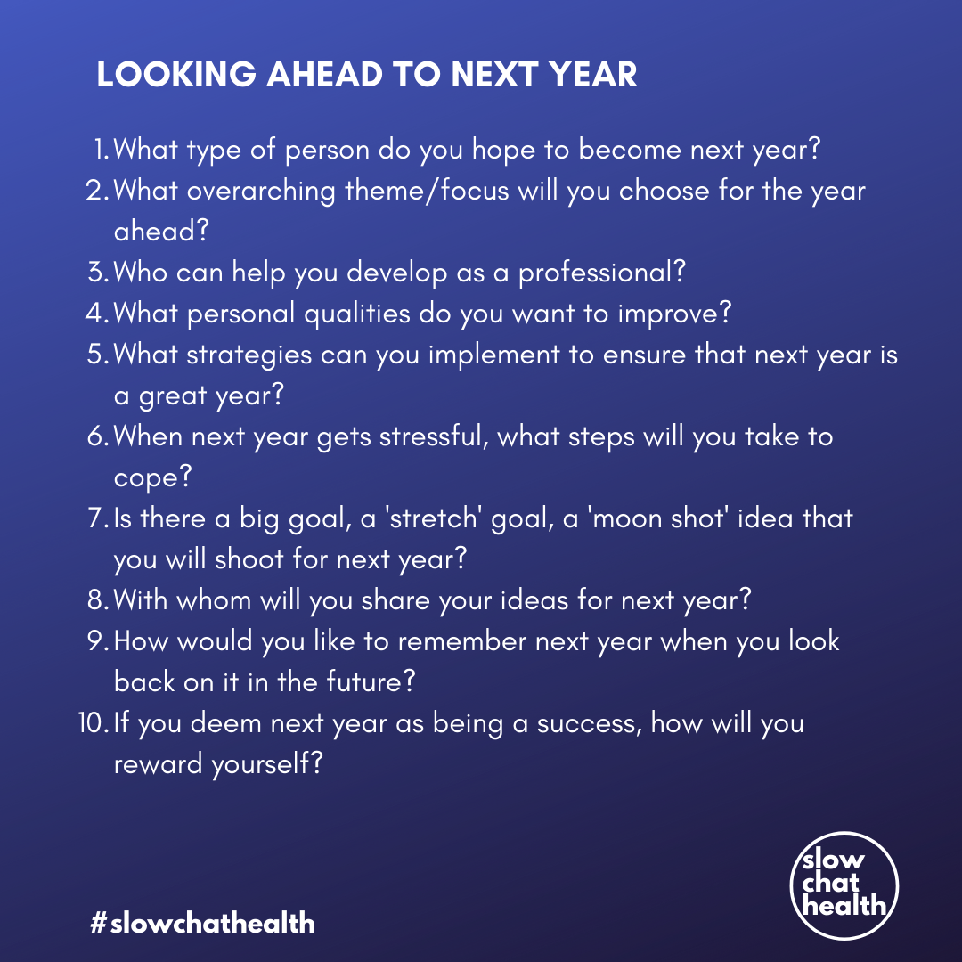 Here are a few #slowchathealth questions to take us towards the end of the year.