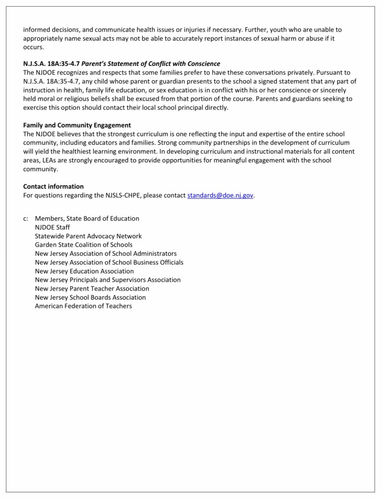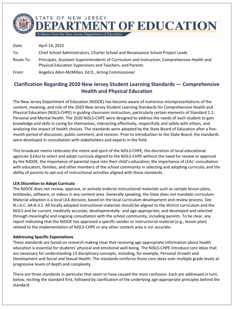 Over the past ten days, New Jersey citizens have become the target of a massive misinformation campaign focused on the sex education indicators in the Standards for Comprehensive Health and Physical Education. This campaign has been replete with falsehoods and other absurdities. Even though many of the falsehoods have been unequivocally debunked, some individuals and media outlets continue to repeat the factually inaccurate information.