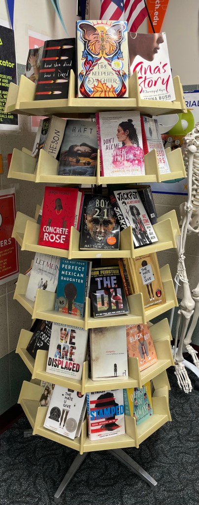 The idea is simple, I have several health-related books in my classroom and students can come visit anytime to grab a book. Even when I’m in the middle of teaching, I may have a student sneak in and start spinning my bookcase to find a new book to read. I’ve been able to connect with even more students over conversations about books. I promote more students to read as most of my books are different from what they’ve seen in their English classes. It’s a conversation starter and students even share their book selections with me and recommend books. Plus, my administration loves it!