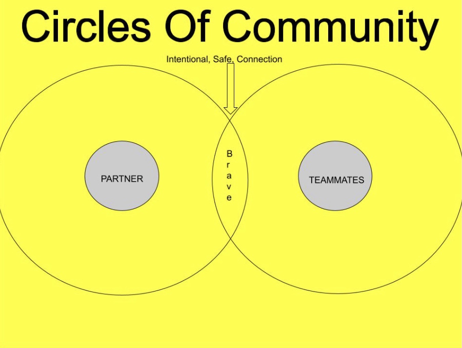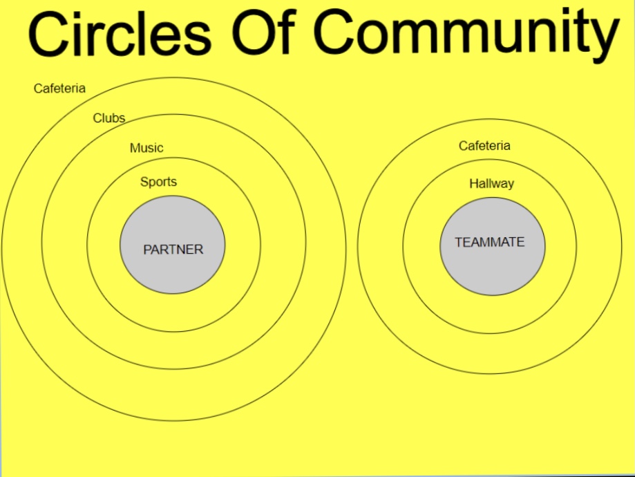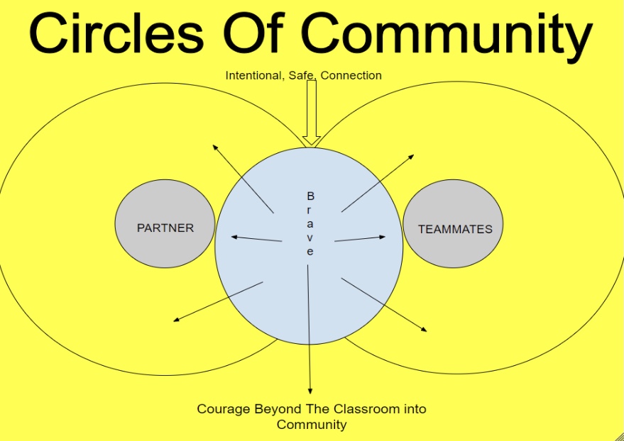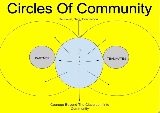 When I teach students about “The Space Between,” we help each other recognize all our Circles of Community and areas of support with activities we are involved in. Maybe we have one or more friends or adults in those communities that feel safe to us. Recognizing that teammates may or may not have as many Circles of Community as partners because the privilege of being born without a disability allows us to have more rights and activities available to participate in. “The Space Between” is the unique place between understanding and misunderstanding, empathy and apathy, and, dare I say, between social justice and social injustice. Students notice how their circles of community generally never collide with people with visible disabilities (Figure 1), so how will we ever care about social justice and help our teammates find a voice if we don’t find purposeful relationships with people who are different? Unified P.E. is the place where we can create a safe environment (Figure 2) in “the space between” for all students in their least restrictive environment to form a meaningful lifelong connection to physical activity and to others. I did not realize initially that creating an environment that fosters courage can go deep to the soul level.