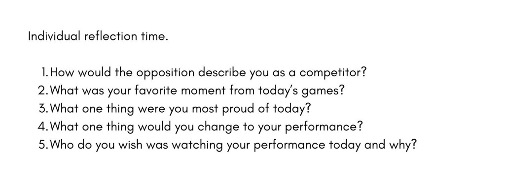Typically, when we play games in class, they are an opportunity for students to showcase the skills and knowledge they have learned, but now that I am being more intentional with my practice, I ensured that time between games was also used effectively. Inspired by Matchplay Reflection cards from The Coaching Lab I recently purchased, teams came together at the end of game one to discuss their performance. I also asked teams to provide a scouting report to the team playing their opponent next. I had never considered doing something like this before, and the students responded positively! This additional reflection opportunity exemplifies the impact of seeing my lessons through a Meaningful PE lens.