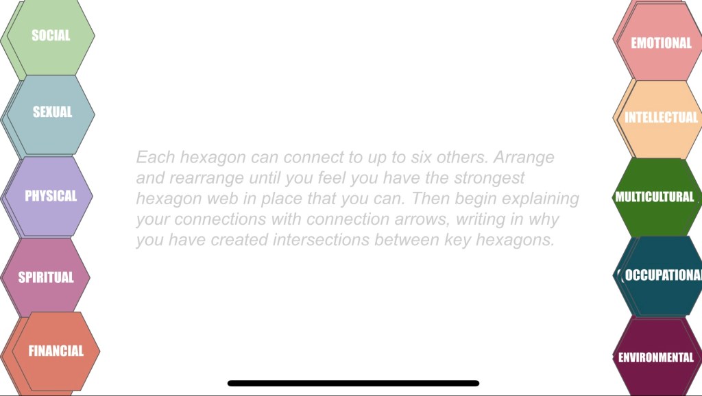 I love my lessons on The Dimensions of Wellness (which remains one of my most popular blog posts), and it occurred to me that if we want students to see how each dimension of wellness is intricately intertwined, influencing one another in complex ways, Hexagonal Thinking might be the ideal teaching tool. Offering a dynamic visual approach for students to explore these connections and recognize that well-being is a holistic journey, I researched ways to bring this to my classroom.