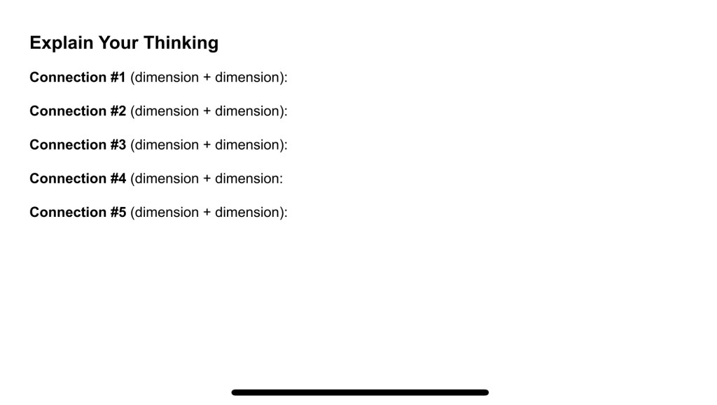 Similar to my lessons on ‘Goal Setting,’ the value of Hexagonal Thinking lies not just in the final web but in the process of thinking and connecting concepts. Different responses show that students are engaging with this process, which is more important than reaching a single “correct” answer.