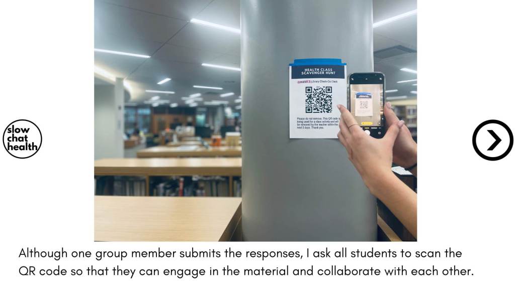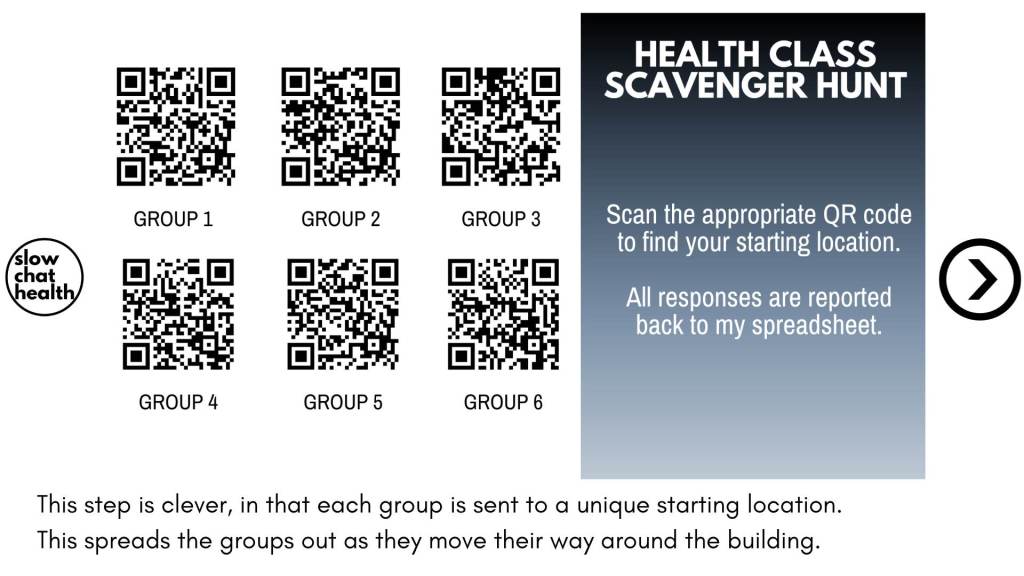 - Print and Place QR Codes: Print and securely place the QR codes in the selected locations. Make sure they are visible and easily scannable. (I find that if you make your scavenger hunt a race, students remove codes and hide clues, hence my emphasis on completion being more important than speed.)