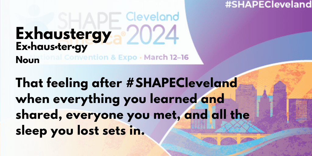 2. Provide Feedback: While the conference is still in your head, why not provide feedback to SHAPE America and let them know what went well, and any suggestions you have for next year’s conference in Baltimore.
