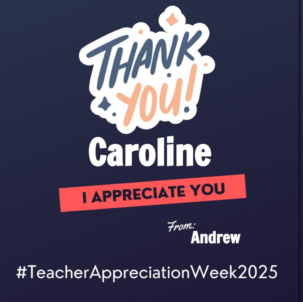 In addition to Bob’s shout outs, and Dales’ happiness boomerang, you can also join in with my simple way to show appreciation to a teacher. Based on the simple techniques shared in this post, and using the power of the Google extension ‘Autocrat’, if you complete this simple form, a personalized appreciation image will be sent to the teacher of your choice. See below for an example.