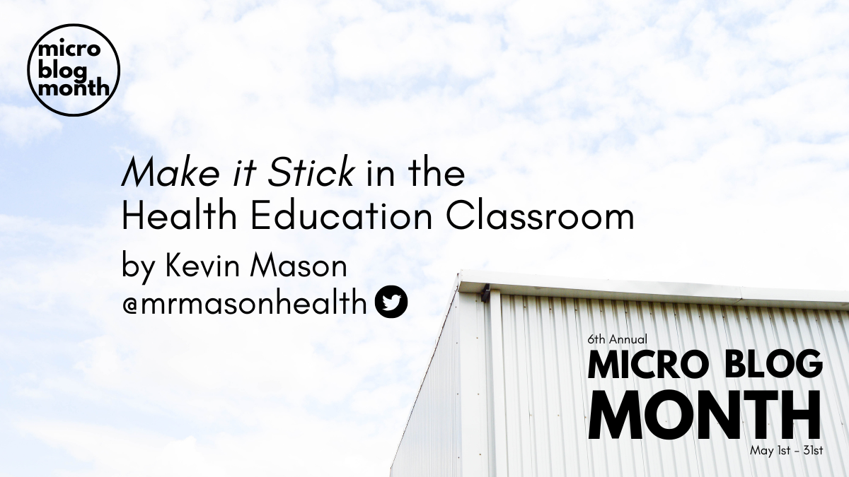 Make It Stick is the best education book I have ever read. The reason I love this book so much is because it so intimately connects to skills-based health education and has changed my teaching strategies forever. Peter Brown, Henry Roediger, and Mark McDaniel explain complex neuroscience in a digestible and novel way and I hope to explain how it can be used in the health classroom. There are many other important points in the book but I will focus on my top three: