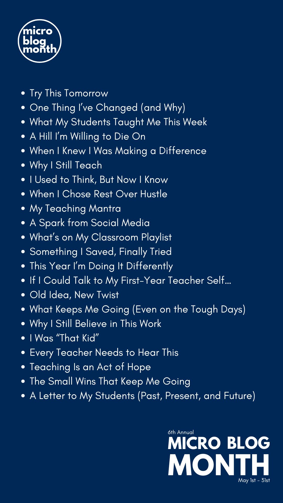 This really is up to you. I’ve written microblog posts on embracing conversations about personal pronouns in the classroom and a passionate post about the value of comprehensive sexuality education. One year I successfully challenged myself to write a post exactly 500 words long!
