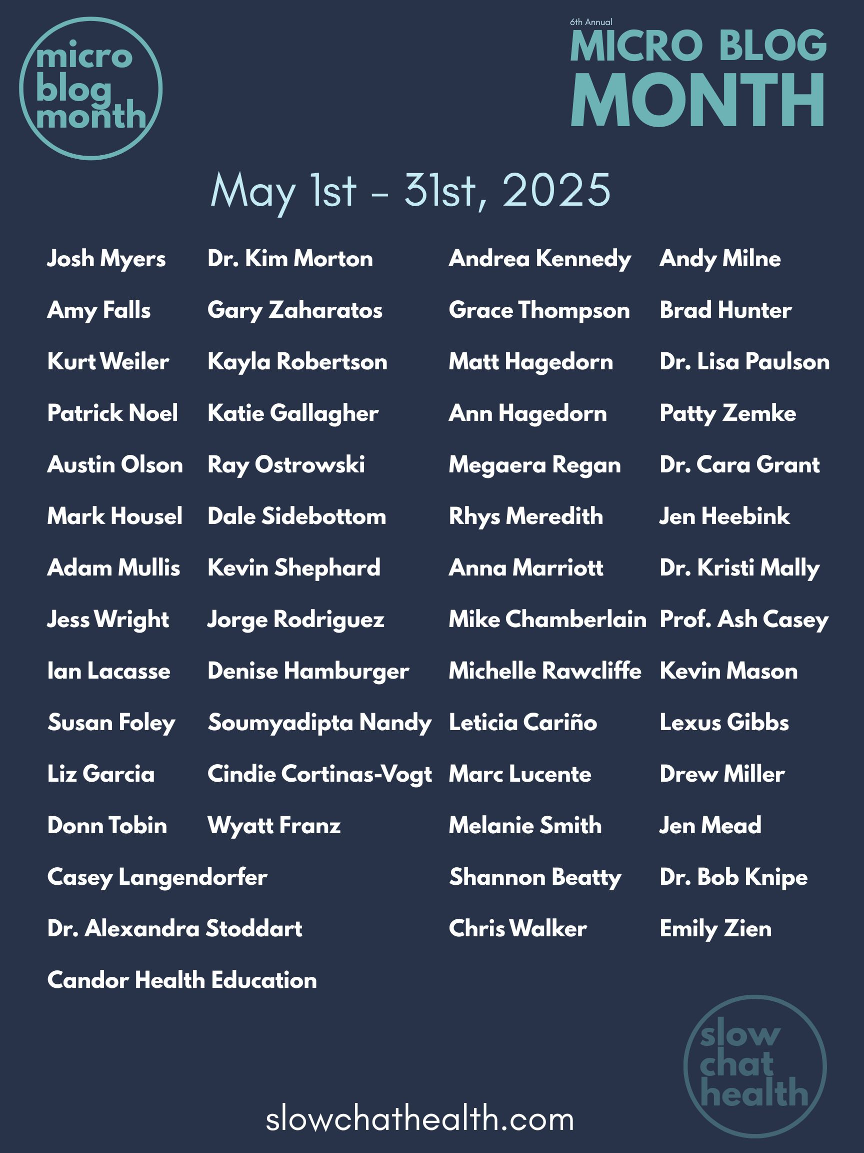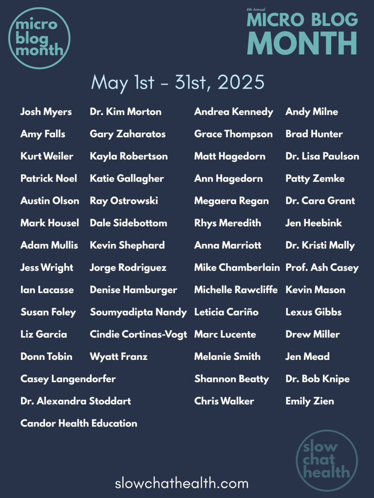 Please consider sharing your passion for health education with our global audience of like-minded educators. You can find examples of previous microblog posts here, and check out the names of our awesome contributors from 2025 below.